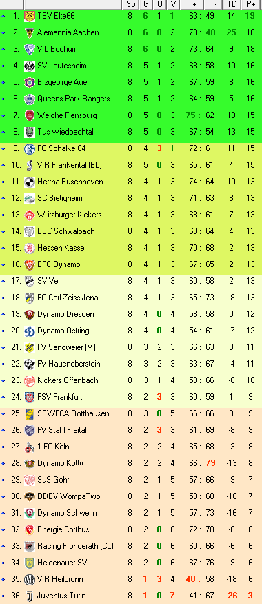 - Platz 01 - 08 Qualifikation für das Achtelfinale