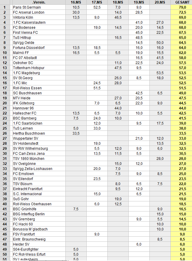 Last - Cup - Weltrangliste