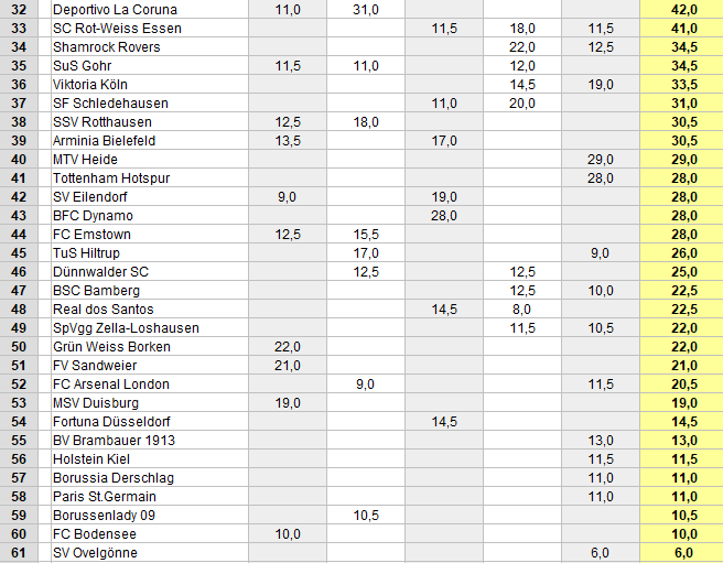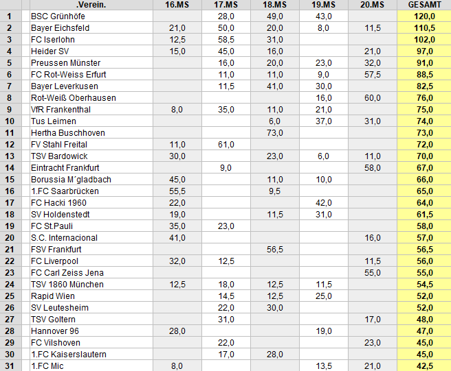 League - Cup - Weltrangliste